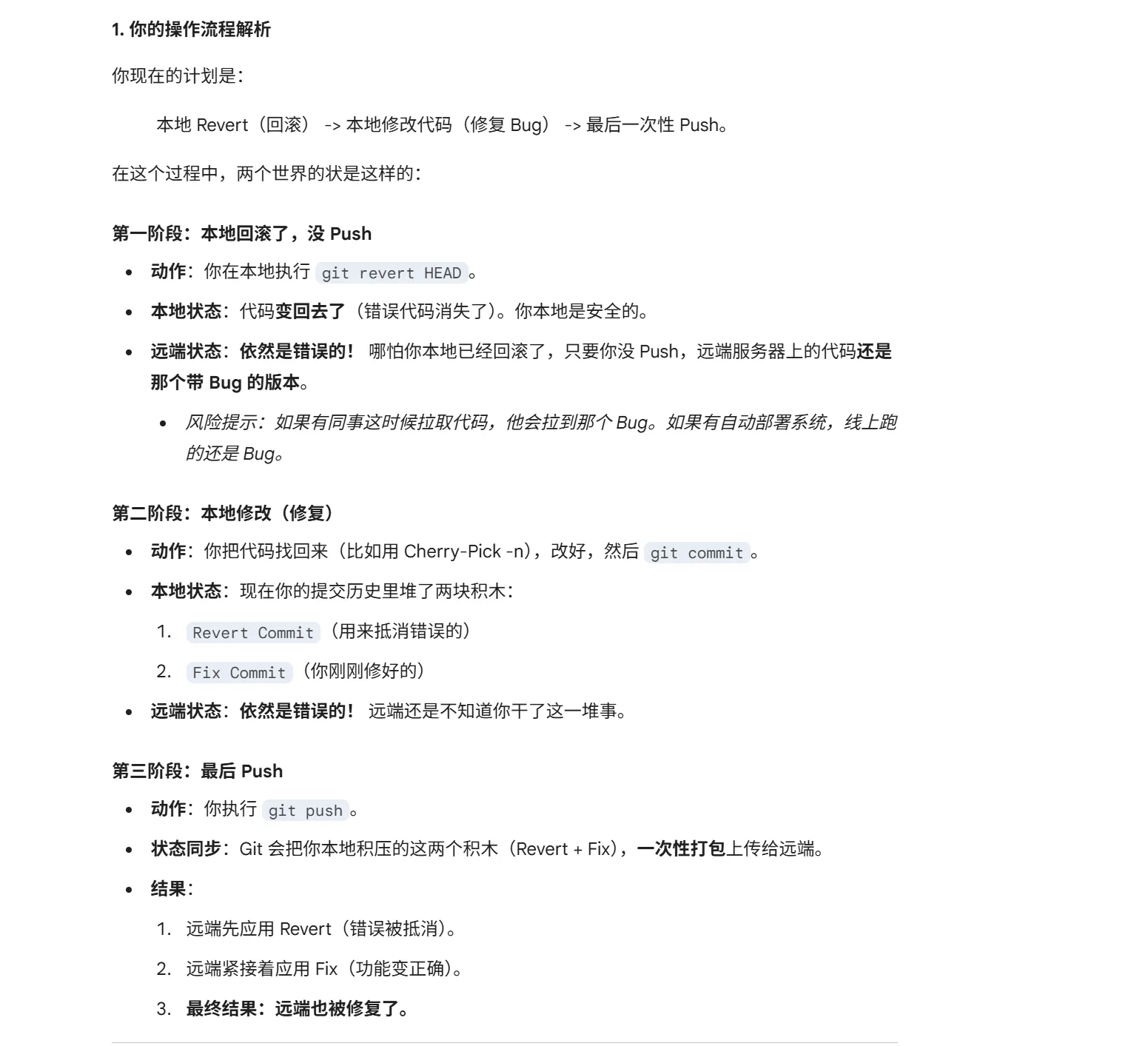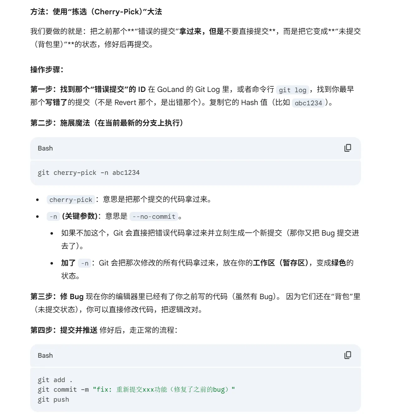 回滚相当于把你提交的代码,在本地全部删除了,所以再push一次,远端也没有了,那么如果你回滚后的代码想修改呢?需要用到这个方法了。