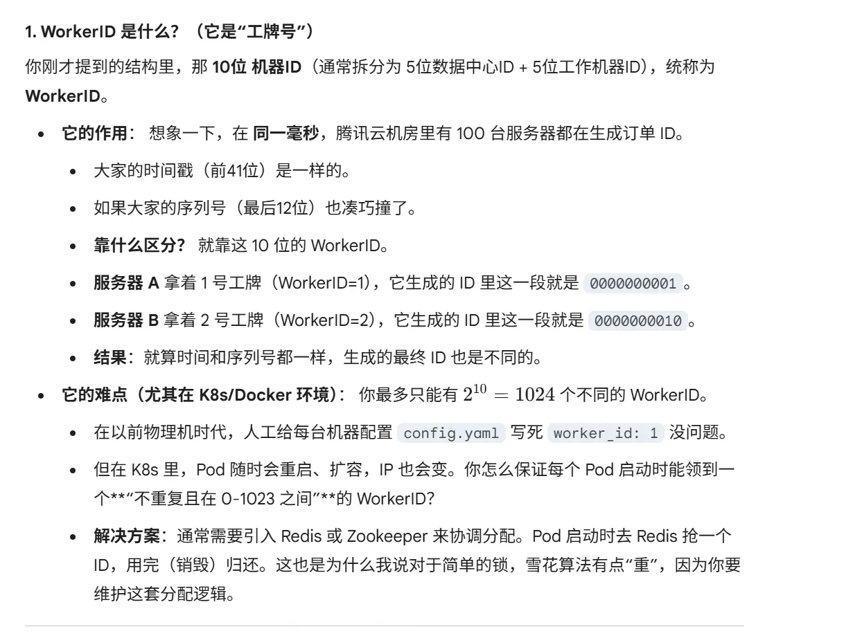 他需要依据workerID来生成,是偏重的,不像uuid,导入库就能用,雪花算法用于需要插入数据库的,他的大小是逐渐增大的,对索引特别友好。