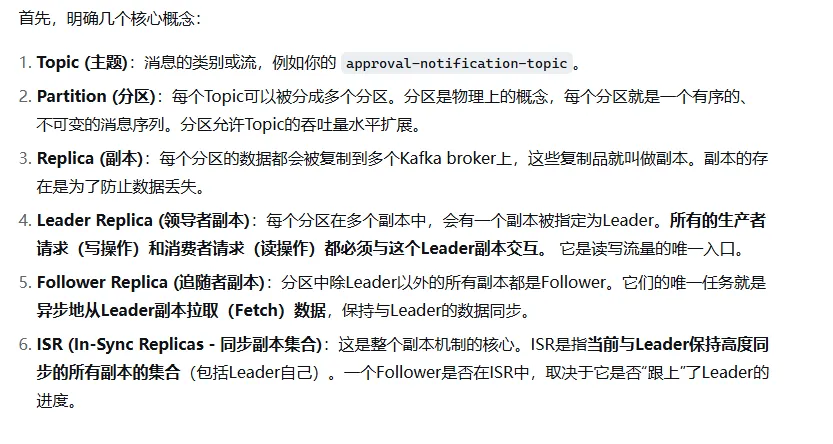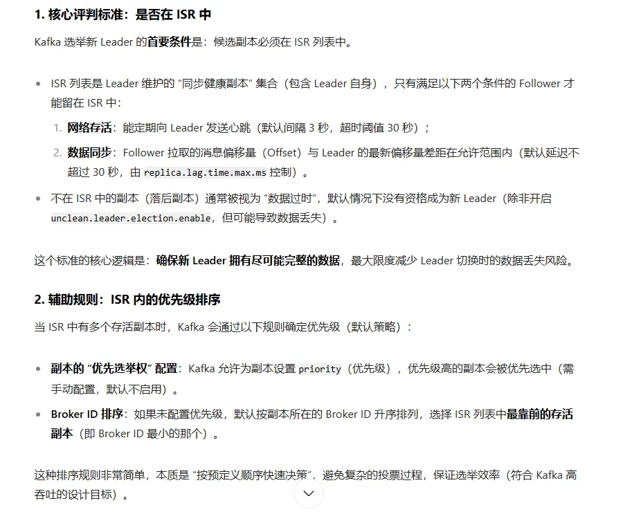 replica.lag.time.max.ms。这表示 Follower 不能“掉队”太久。偏移量差(旧版本,现已主要使用时间判断):Follower 副本与 Leader 副本之间的消息条数差不能超过一定阈值(由