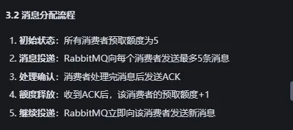 使用qos保证负载均衡:避免单个消费者处理过多消息而其他消费者空闲的情况,通过设置预取消息数量,处理时间,流程类似于这样。