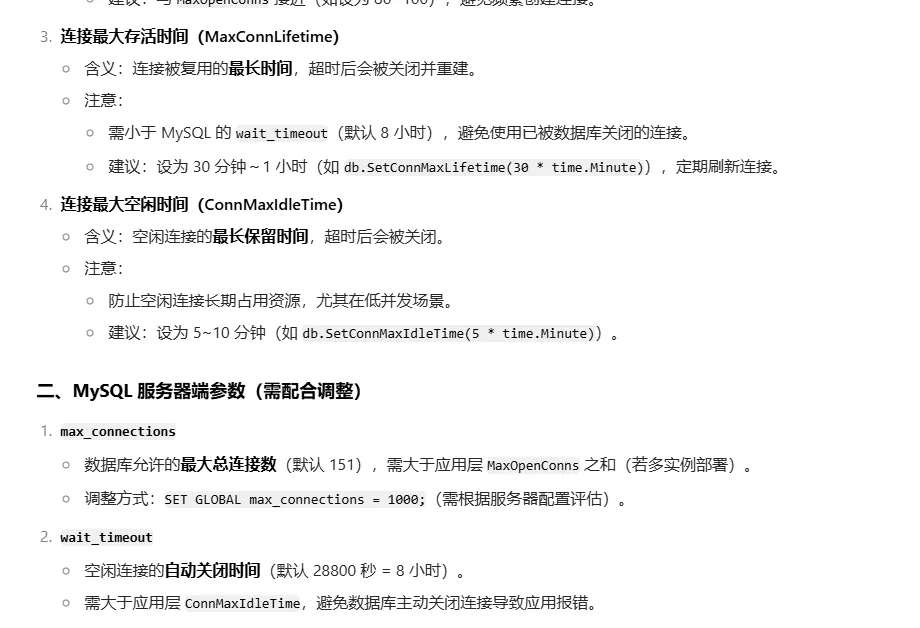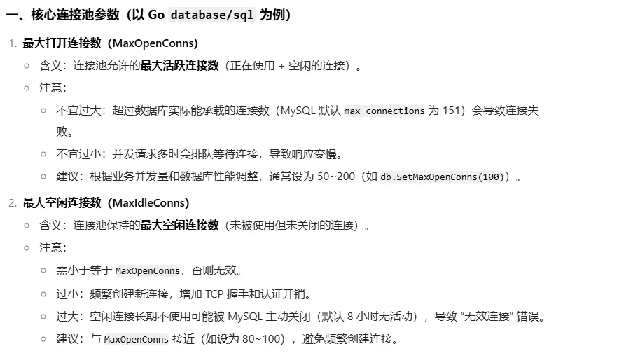 通过DB.Stats()查看连接池状态(OpenConnections活跃数、Idle空闲数、WaitCount等待连接次数),若WaitCount持续增长,说明MaxOpenConns不足,需适当扩容;若Idle长期为 0,说明MaxIdleConns过小,需调大。