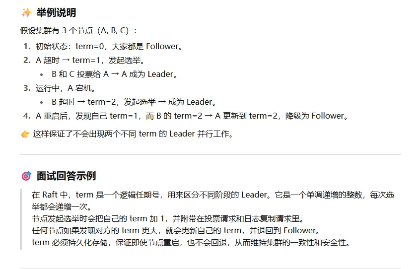 不同点:Raft 更强调日志连续性和可理解性,ZAB 偏重于事务提交模型。