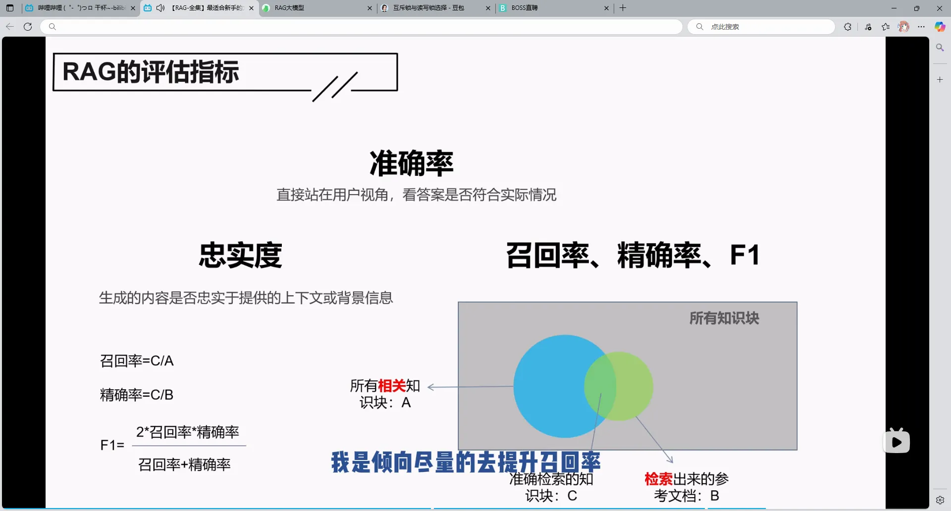 召回率与精确率是你生我降的关系,我感觉应该更重视召回率,因为大模型没有就是生成不了,但是如果你给多了,或者有错误,他可能会排除