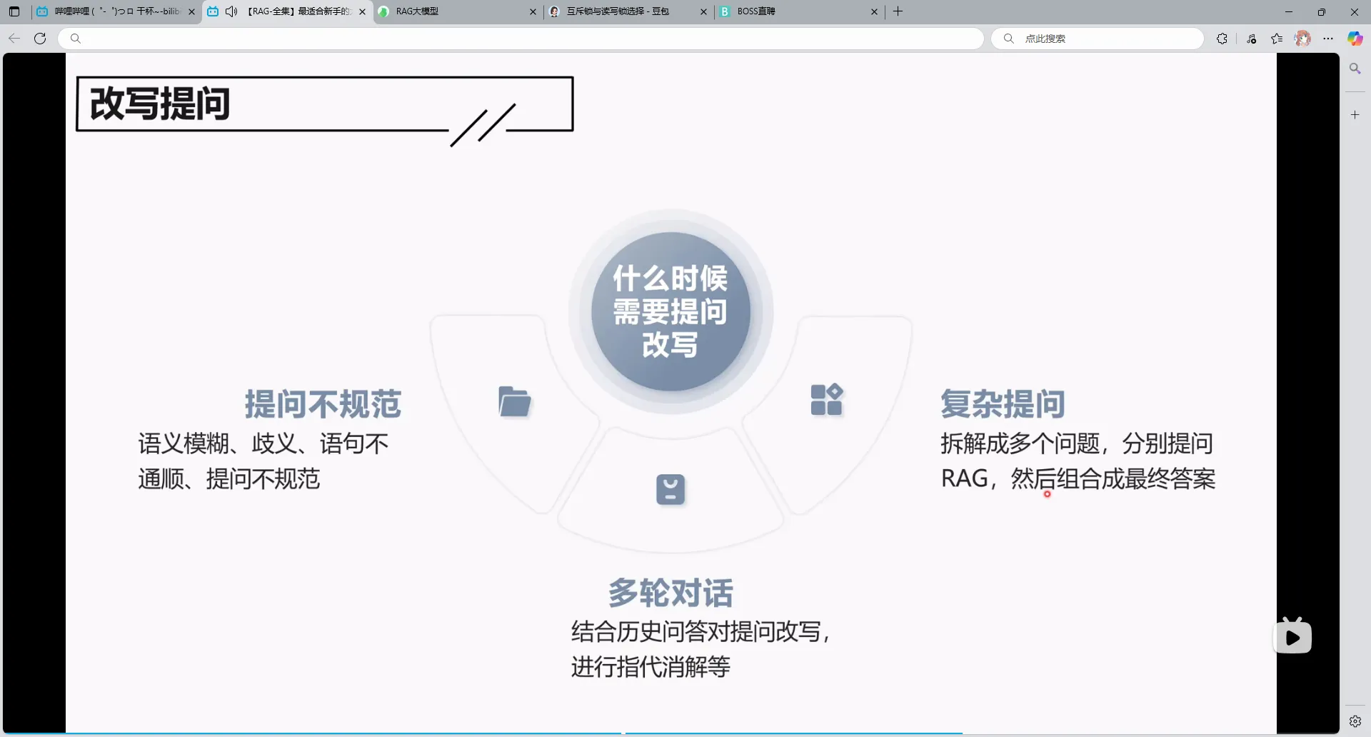 用户的提问可能是模糊的,而且有可能是多轮对话,比如说:三国吕布多高,第二轮:他的武力多强,这个他就要改写成吕布